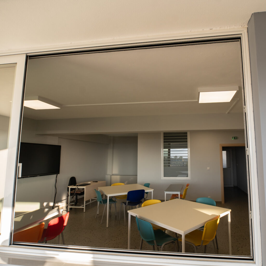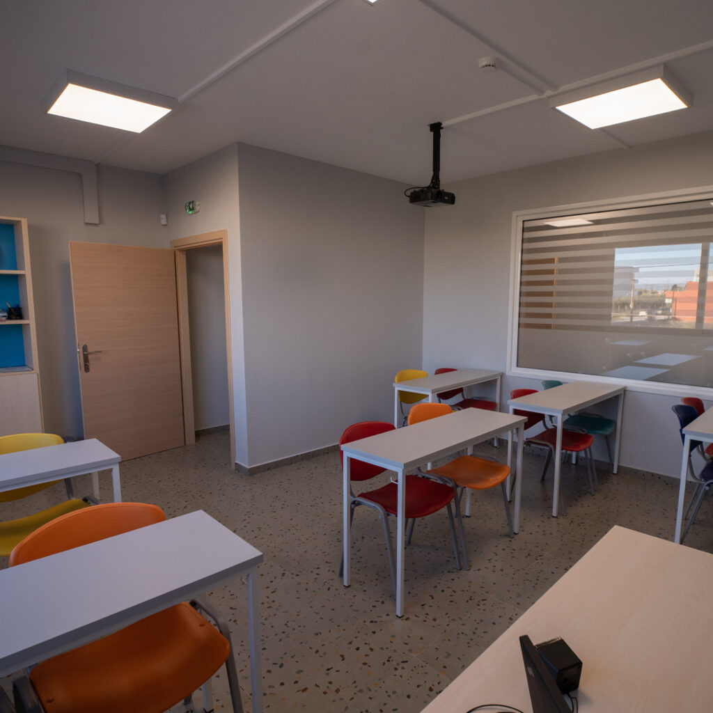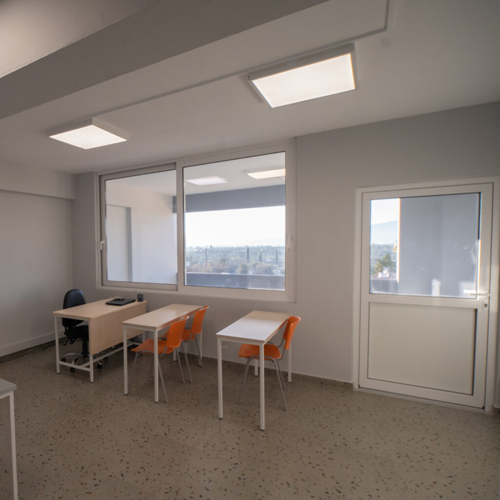• Ηχομονωμένες πόρτες και αντιολισθητικό δάπεδο βινυλίου στις αίθουσες, για ιδανικό εκπαιδευτικό περιβάλλον.